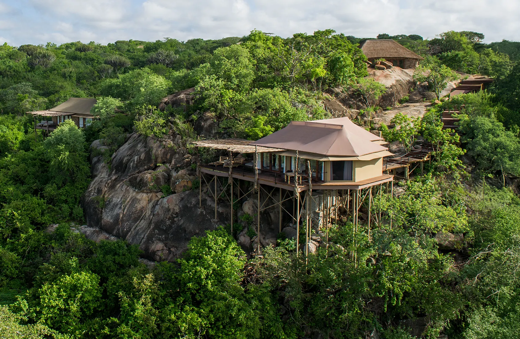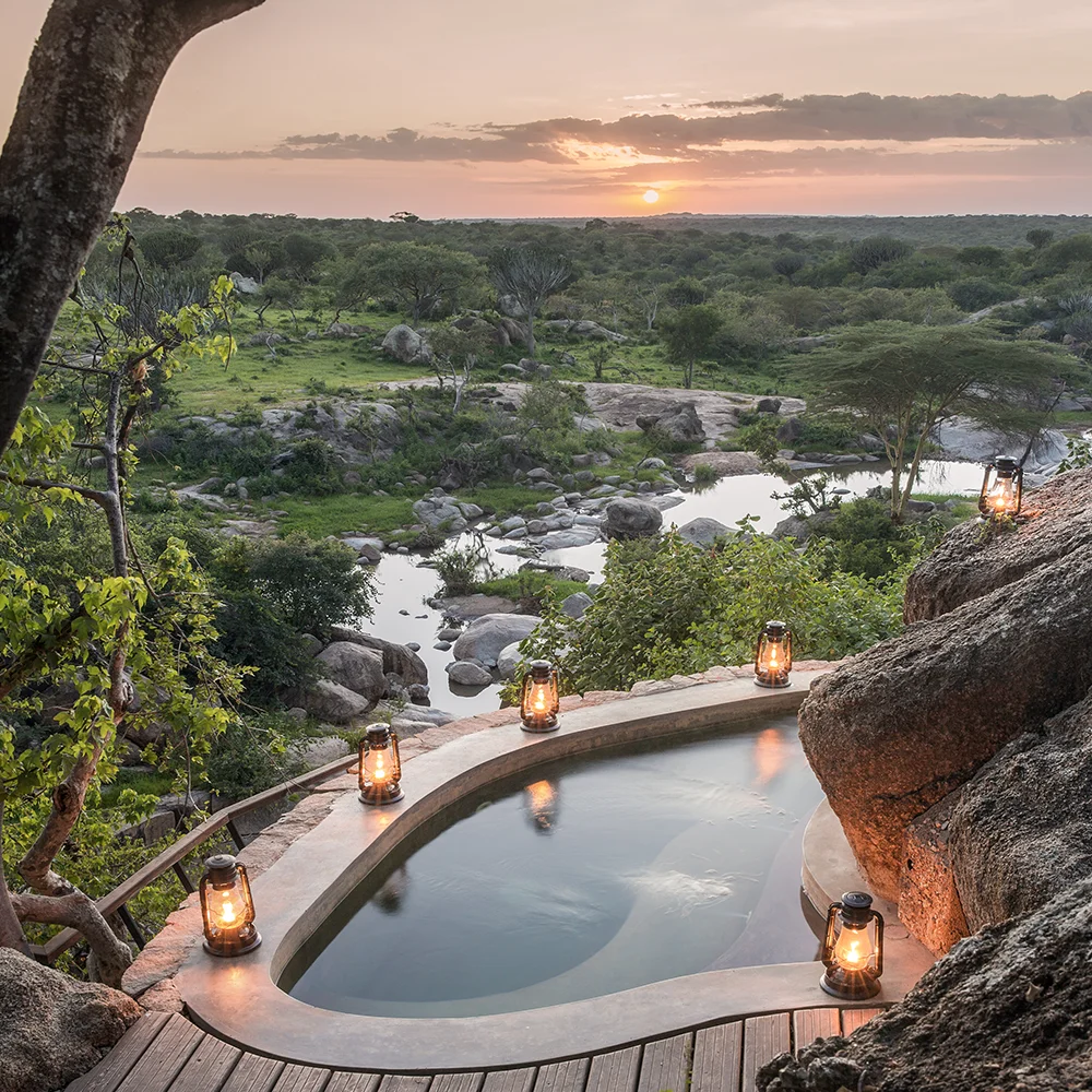 Mwiba Lodge is an ultra-luxurious property in a vast 51,000-acre private conservancy bordering the southern Serengeti. Just 8 opulent suites are hidden among giant boulders overlooking a rocky gorge with natural springs. The private setting allows walking safaris, night drives, and complete exclusivity. Service and cuisine are among the finest in Tanzania. One of East Africa's most exclusive and coveted safari lodges.